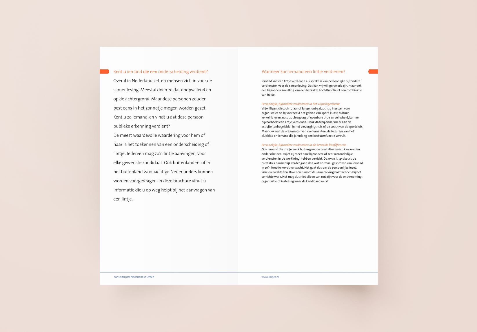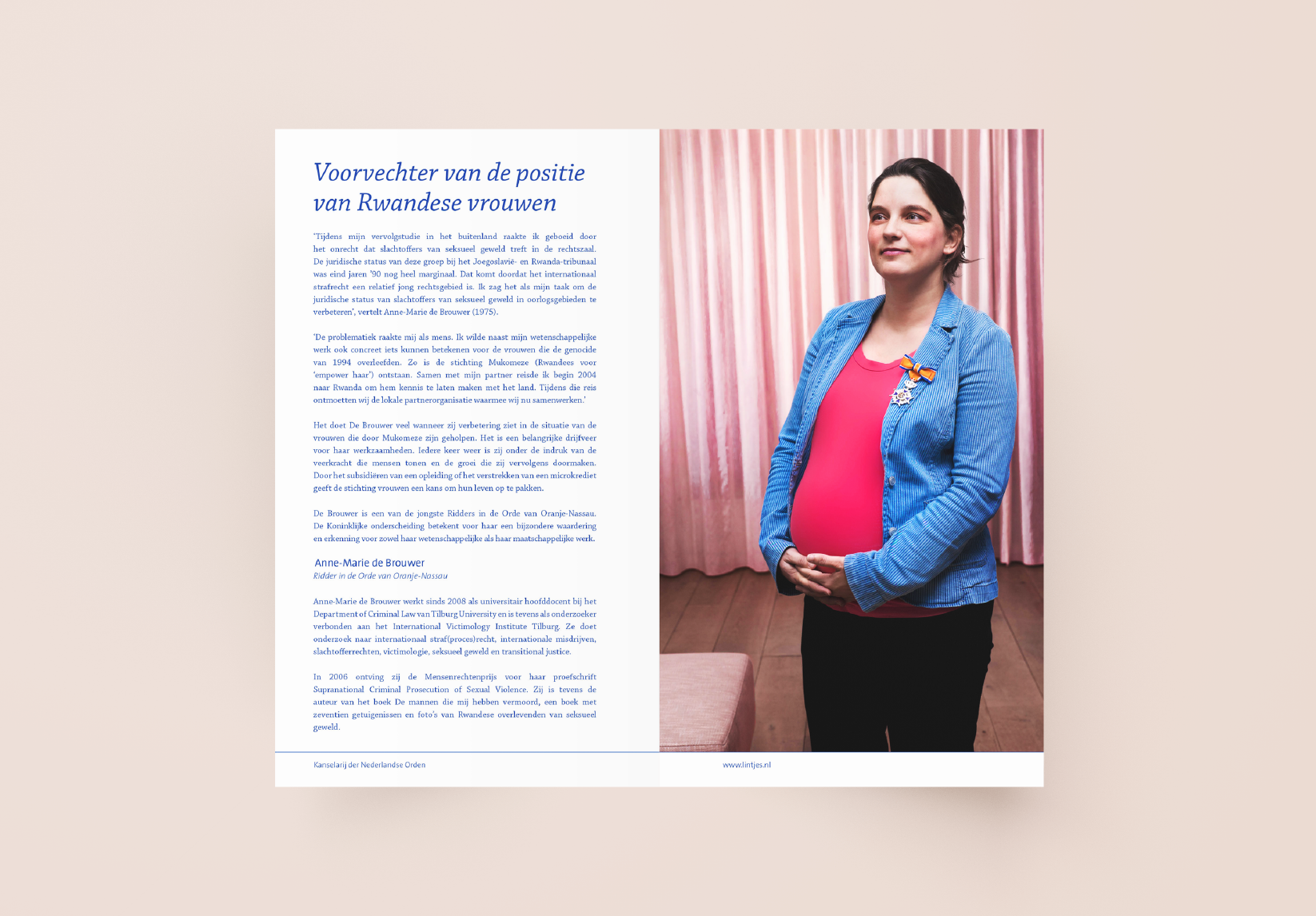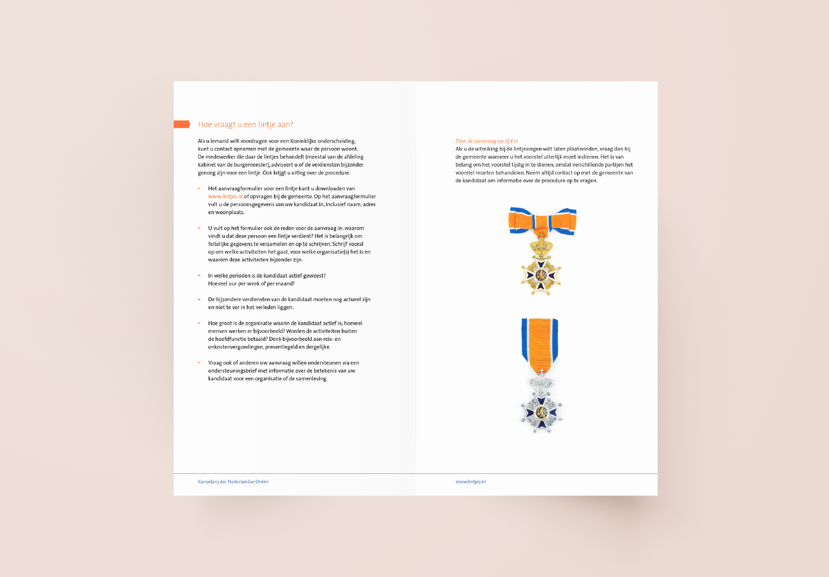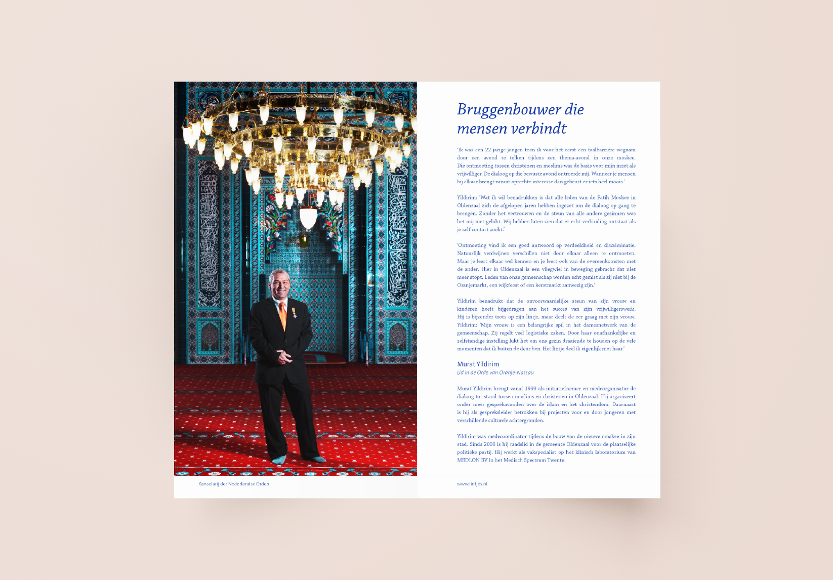Samen met tekstschrijver Linda Glebbeek en fotograaf Ilya van Marle is er een nieuw concept ontwikkeld. Persoonlijke portretten en interviews van de gedecoreerden zijn samengebracht met praktische informatie over het aanvragen van een lintje. Deze informatie uiteraard gebonden met een oranje lintje.