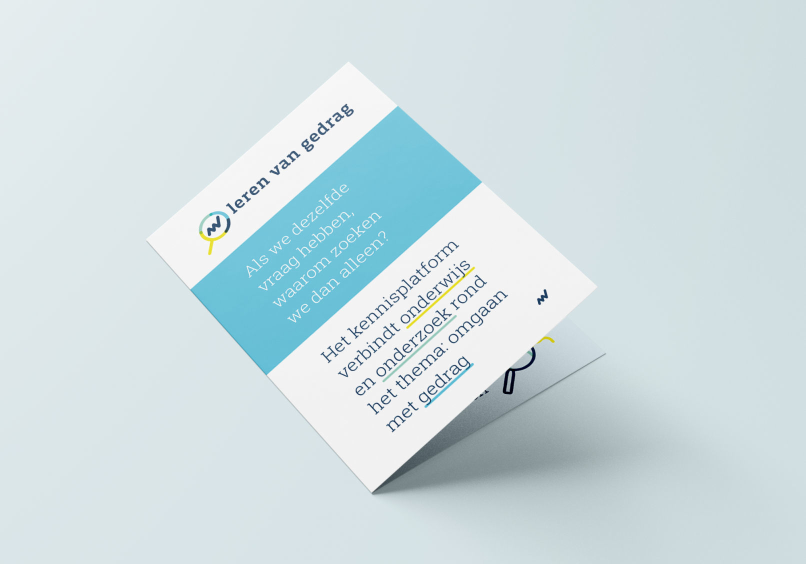 Leren van Gedrag is het kennisplatform voor actieve kennisdeling tussen onderzoekers en praktijkdeskundigen binnen het thema gedrag en passend onderwijs. Een platform waarbij het uitwisselen van informatie centraal staat, daarnaast geeft het informatie over activiteiten die worden georganiseerd rond het delen van kennis. De samenwerking van de verschillende partijen komt terug in de kleuren die met elkaar verbinden. Samen leren we en versterken we elkaar. Het concept is verder uitgewerkt in de diverse huisstijlmiddelen.