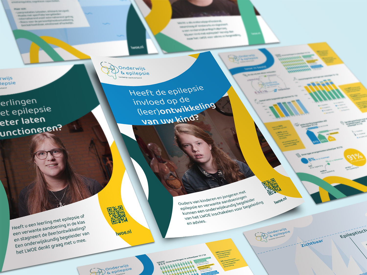 Leerlingen met epilepsie beter laten functioneren binnen school en de maatschappij met hierbij de juiste zorg. Dat is wat de ambulant hulpverleners van het Landelijk Werkverband Onderwijs & Epilepsie doen. Zij adviseren en begeleiden kinderen en jongeren met epilepsie in heel Nederland. De oude visuele identiteit bestond al een ruim aantal jaar en dus was er behoefte aan een frisse update. Een nieuwe eigentijdse identiteit die leerlingen, leerkrachten, ouders en zorgprofessionals met elkaar in verbinding brengt.